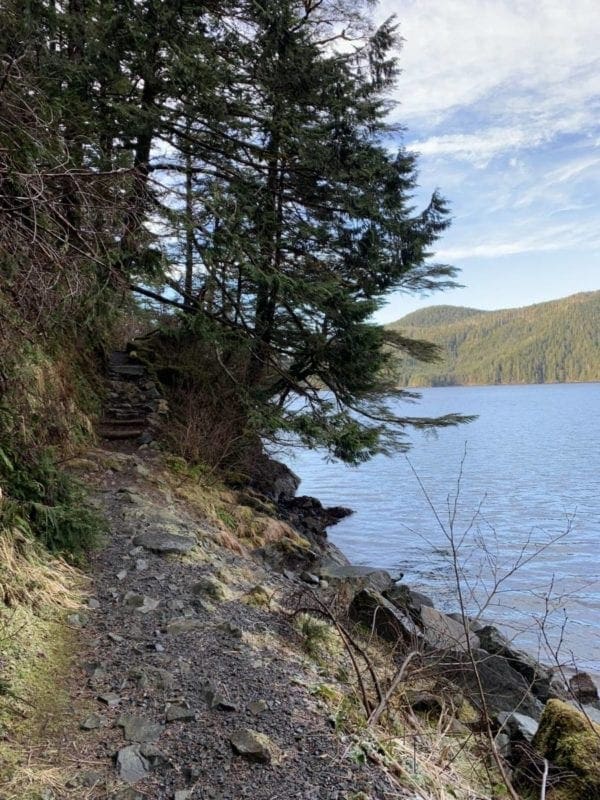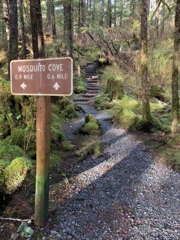 Mosquito Cove Trail (easy/moderate, 1.5 miles round trip, approx.1 hour) is another great option. This trailhead is located right down the road from our lodge. The perfect place to get out and stretch your legs after being out on the water!