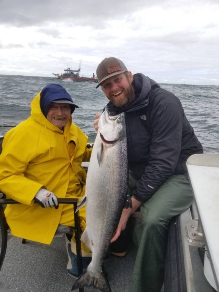 A special shout out to Ernie Petersen who set the record at AU. He’s been a special friend to AU for decades and Captain Tom knew Ernie back in the Neah Bay days. Ernie, at 97 years young, landed himself a nice king, breaking the record set by 96-year-old T.T. Nakamura in 1996. Ernie will be back for another round of fishing in August and we look forward to seeing him.