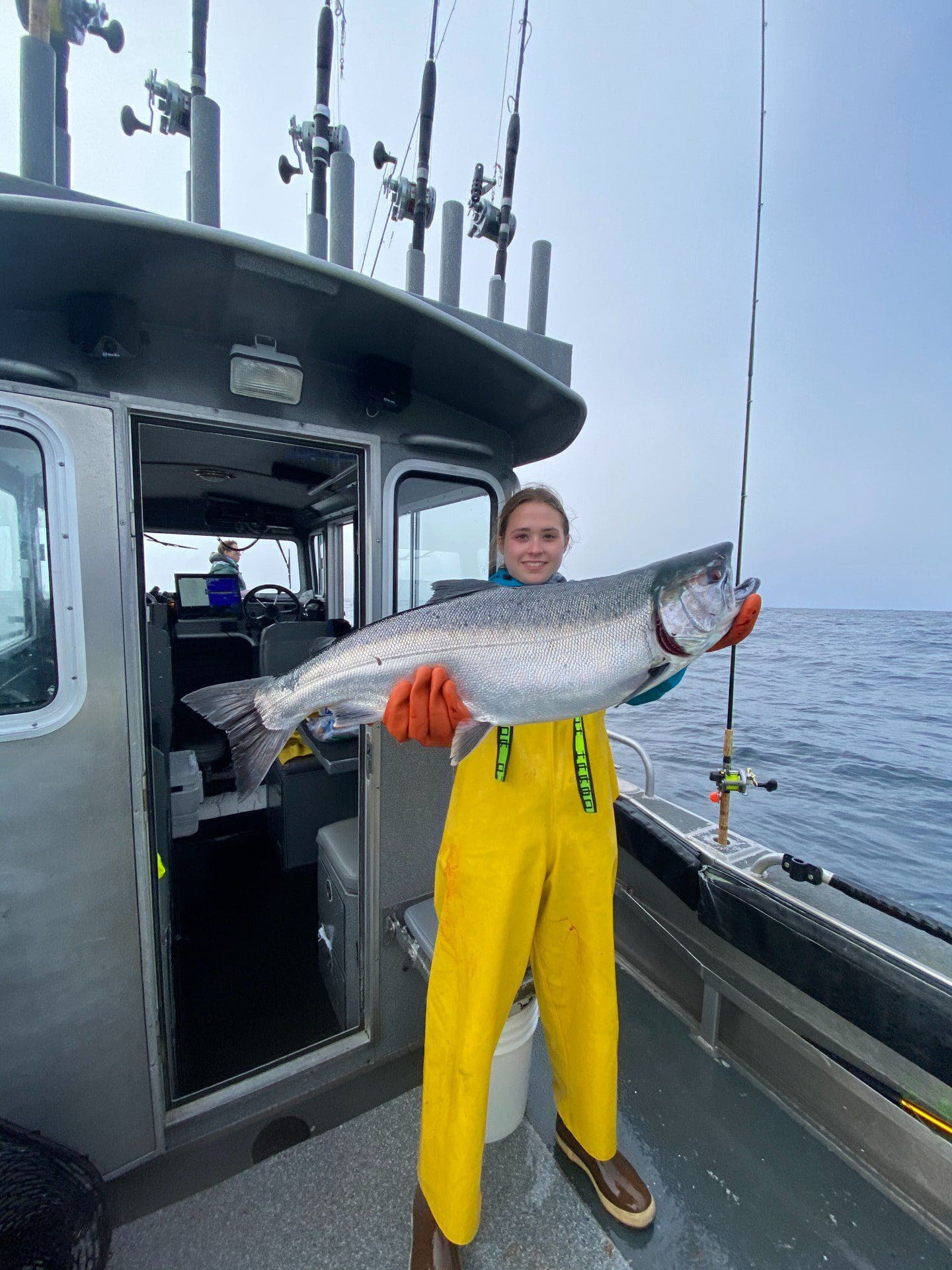 We hope everyone enjoyed their Labor Day. Only a week remains in our 2023 season. The past 7 days provided excellent silver action with lots of them over 10 pounds plus enough kings to nicely spice the action. Halibut continue to please in the same area where we find the silvers. The weather provided a challenge for the first three days of September. The ocean was what we call doable but rough on most days, except September 2 when most of our fleet headed inland and found coho in decent numbers plus halibut, rockfish, and some pacific cod. A few of our boats continued fishing inland on September 3 and 4 to avoid the somewhat unsettled ocean with decent results while those who hit the high seas found fast silver action still sprinkled with the odd king. We have been plagued recently with blue sharks. They eat our herring baits and make for quite a fight that impedes the salmon pursuit.