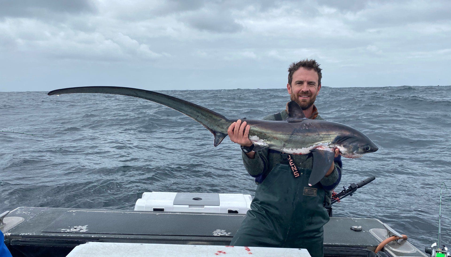 The most extraordinary catch of the week was a small thresher shark landed by Jeremy Shaia from Atlanta. It hit his herring and took him for a ride around the boat before we were able to land it. This is only the second thresher we’ve seen in over 30 years of operating in Sitka.