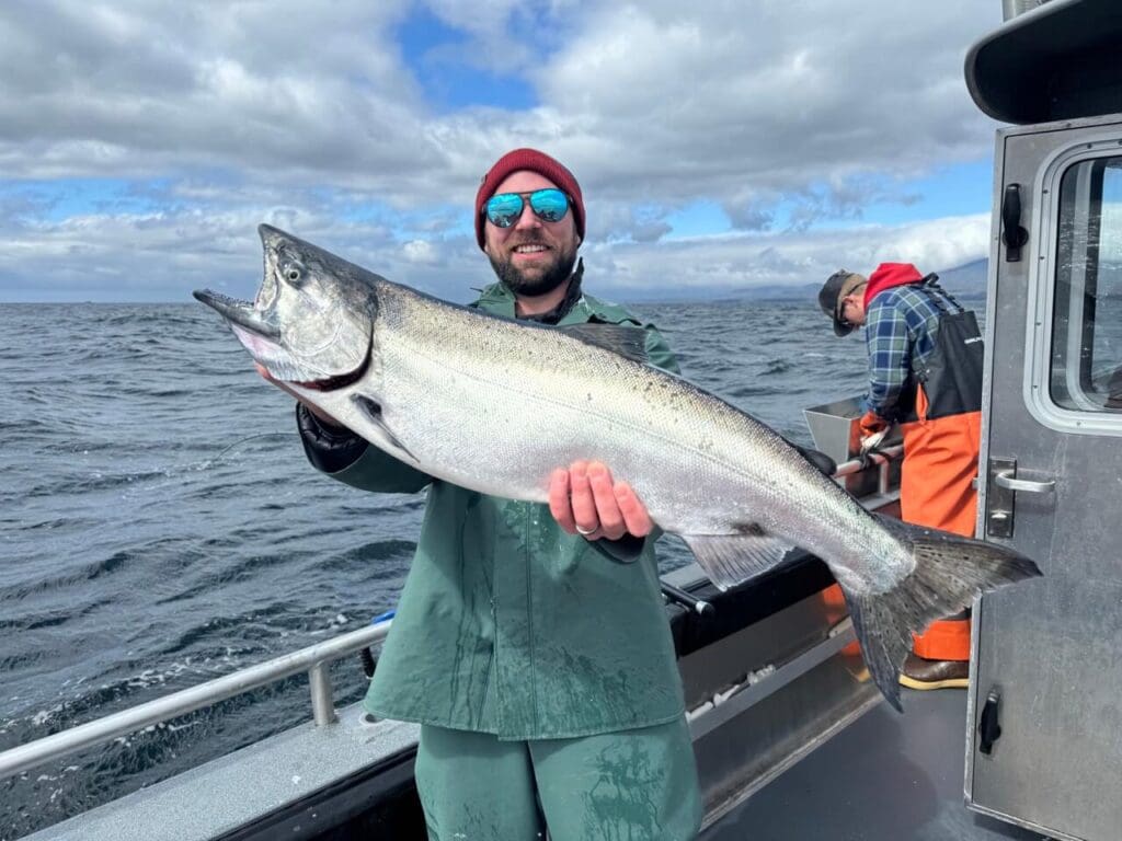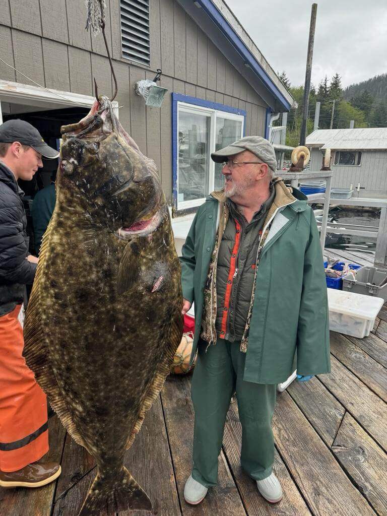 The big surprise of the day came aboard Albatross with Captain Jack McNamee and the Fischer party. With limits of halibut, kings, and rockfish aboard, they decided to pursue lingcod in 30 feet of water. Curt Fischer hooked something big that took off and ran 300 feet of line. Captain Jack fired up the engine and went in hot pursuit. They caught up to the line to find it pointing straight down 30 feet down with 250 feet still off the spool. They managed to free the line from the kelp and the pursuit renewed. It all ended with the landing of the first GAF (guide angler fish) halibut of the season – a 66-inch halibut (estimated live weight of 148 pounds). Fishing doesn’t get much more exciting.