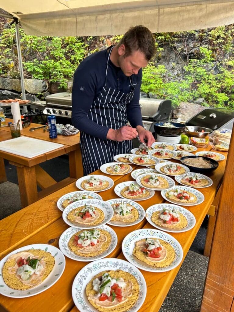 The fishing days of “Hook It and Cook It” include an evening of gourmet meal preparation and cooking instructions courtesy of Ludger Szmania and son Lucas. Ludger’s resume includes a stint as executive chef at the Seattle Four Seasons Hotel and operating his own restaurant, Szmania’s, in the Magnolia neighborhood of Seattle. He and his wife Julie now operate Warm Springs Inn and Winery in Wenatchee, Washington.