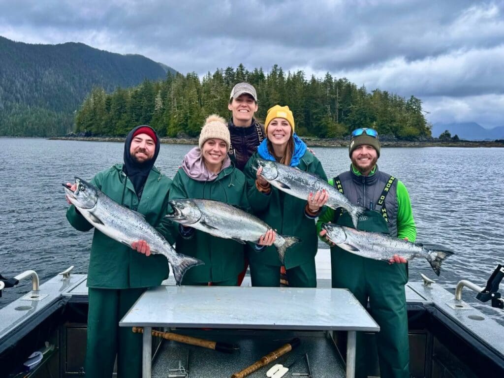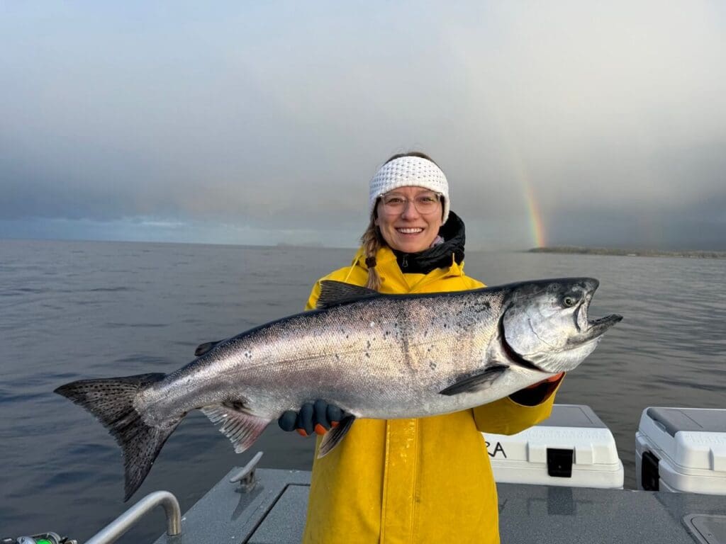 AU’s season got off to a running start with Hook It and Cook It on May 14. The fishing for the first two days was solid with mostly limits or near limits of kings, halibut, and rockfish. On day three the chinook (king) fishing broke wide open with limits for all by 8 AM. After salmon, boats headed out on the ocean where everyone got limits for halibut. Next came the pursuit of lingcod (May 16 is opening day) and rockfish. A fair number of legal-size lings hit the dock along with limits of the always-obliging rockfish.
