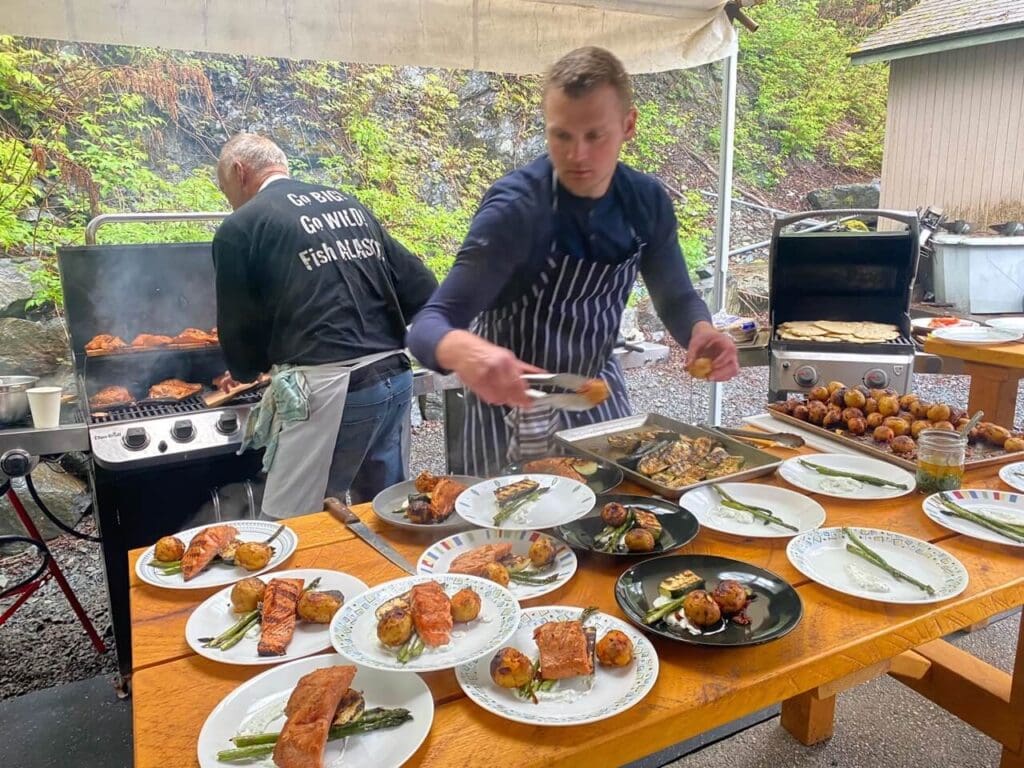 As always, the fishing days of “Hook It and Cook It” were followed by evenings of gourmet meal preparation and cooking instructions courtesy of Ludger Szmania and son Lucas. Ludger’s resume includes a stint as executive chef at the Seattle Four Seasons Hotel and operating his own restaurant, Szmania’s, in the Magnolia neighborhood of Seattle. He and his wife Julie now operate Warm Springs Inn and Winery in Wenatchee, Washington. Ludger and Lucas will return in 2025 with the Hook It and Cook It fishing dates of May 17-20.