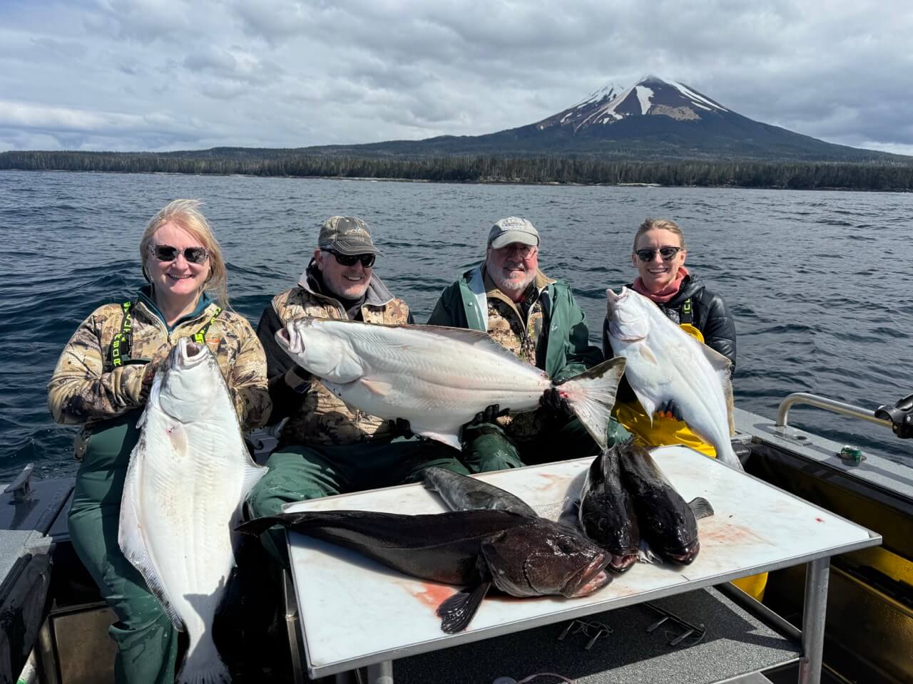 AU’s season got off to a running start with Hook It and Cook It on May 14. The fishing for the first two days was solid with limits or near limits of kings, halibut, and rockfish. On day three the chinook (king) fishing broke wide open with limits for all by 8 AM. The chinook fishing changed location on Friday the 17th but the action remained excellent. Halibut limits were the rule all four days of Hook It and Cook It with the action spiced with three GAF halibut (see below). The rockfish obliged as always and the fishing for lingcod was as good as it gets. On May 16, opening day for ling, most of our guests managed to find a “slot cod” (between 30 and 35 inches).