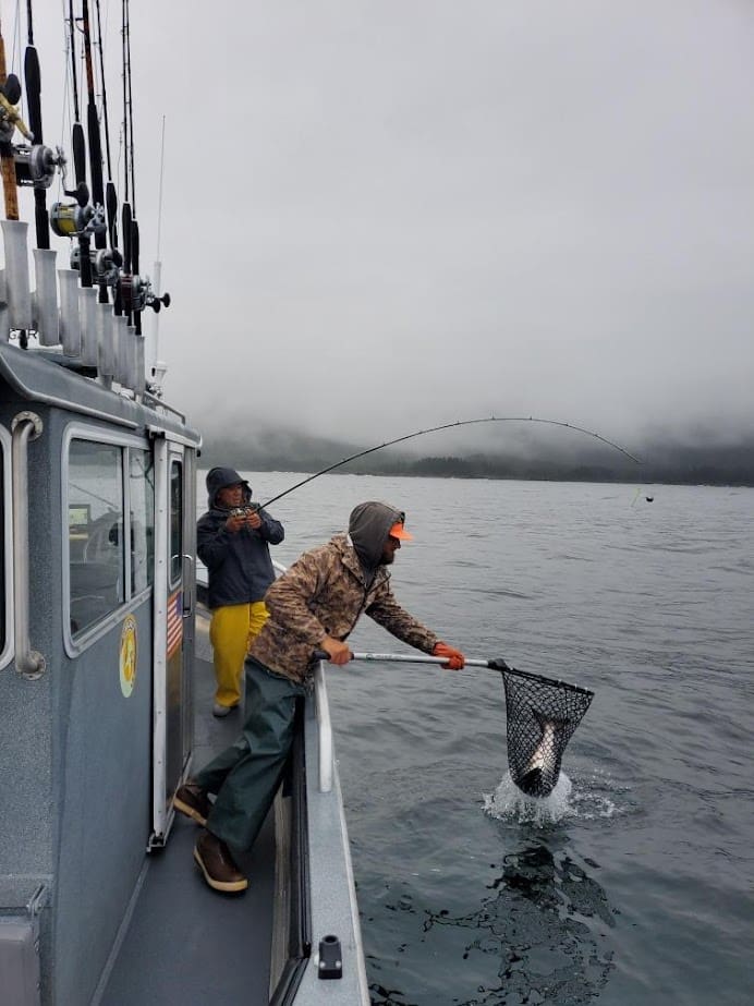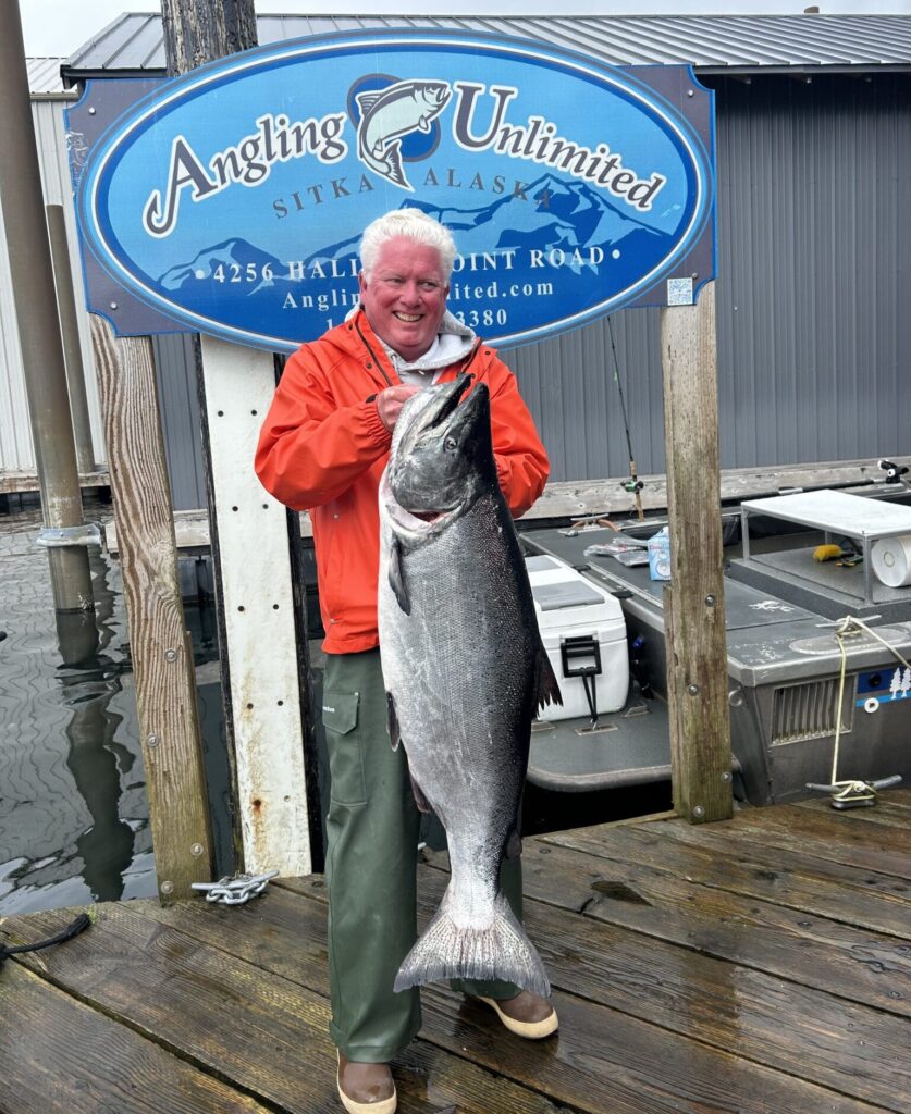 The biggest king of the 2024 season was landed by long time guest and friend Jim Kelly aboard Albatross with Captain Jack McNamee. They were fishing open ocean drifts south of Sitka when Jim hooked the 47 pounder. A long fight ensued before the big buck was brought to the net.