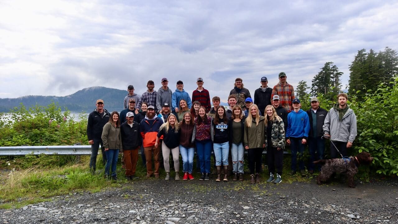 Group gathering of Angling Unlimited staff and management for a big deer hunt. Hunt by day, sit by the campfire and exchange stories of good times in Sitka in the evening.