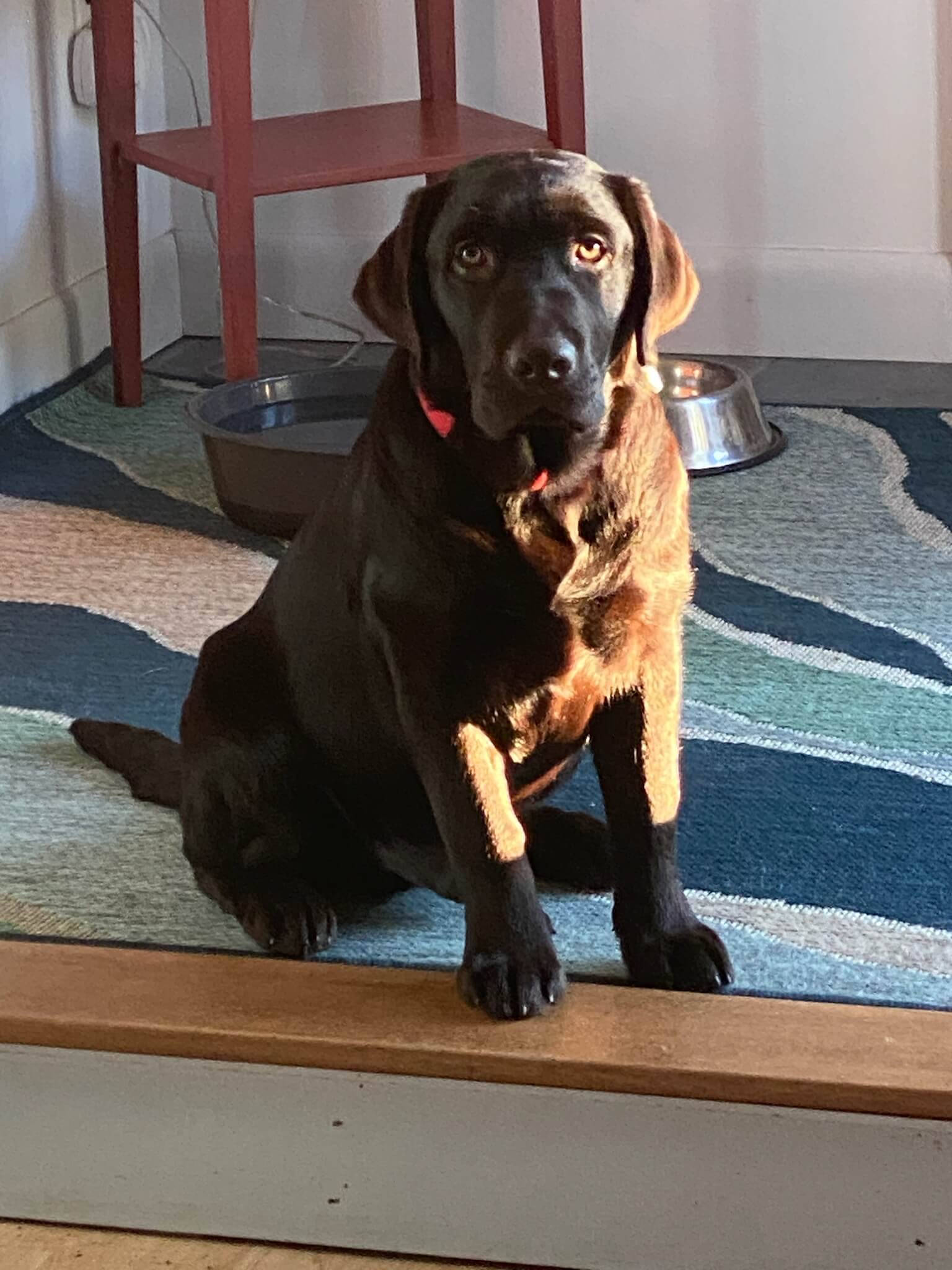 Captain Tom and Linda Mae brought home Ouzel – a chocolate Labrador.