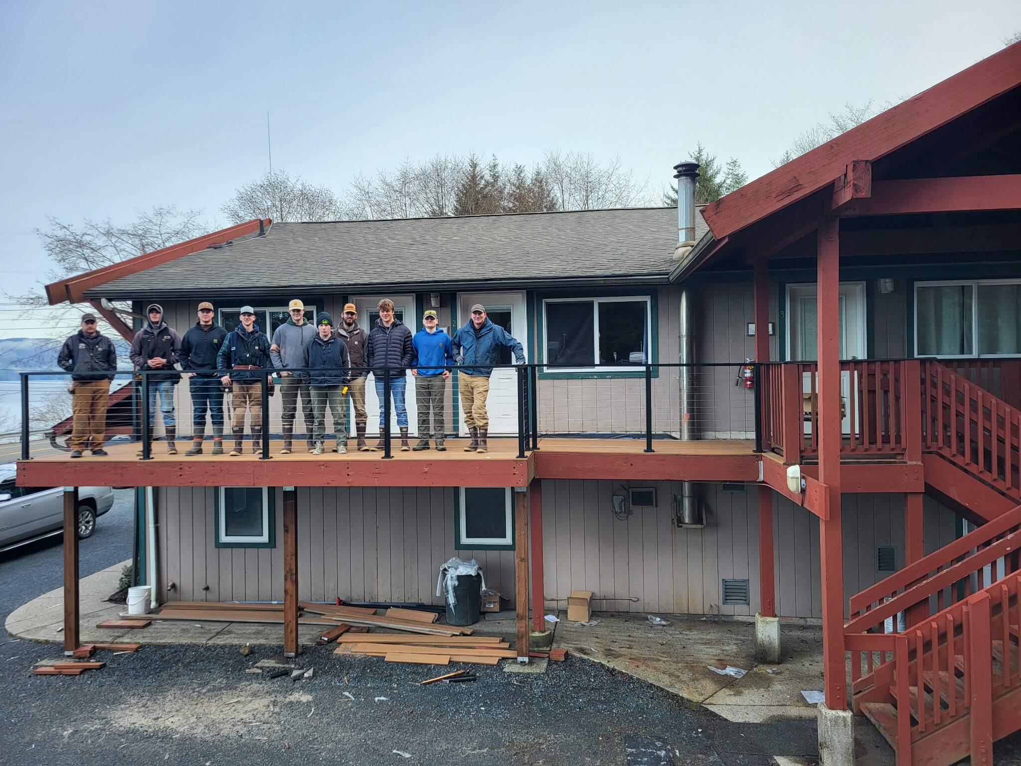 Once materials arrived, Captain Chuck and his hardworking crew of eight powered through Sitka’s rainy weather to bring the vision to life. As luck would have it, Jenny and Grace arrived just in time for a break in the rain—perfect for an inspection and, of course, giving their stamp of approval. Phase two will include updates to the lower-level waterfront decks, so stay tuned for more.