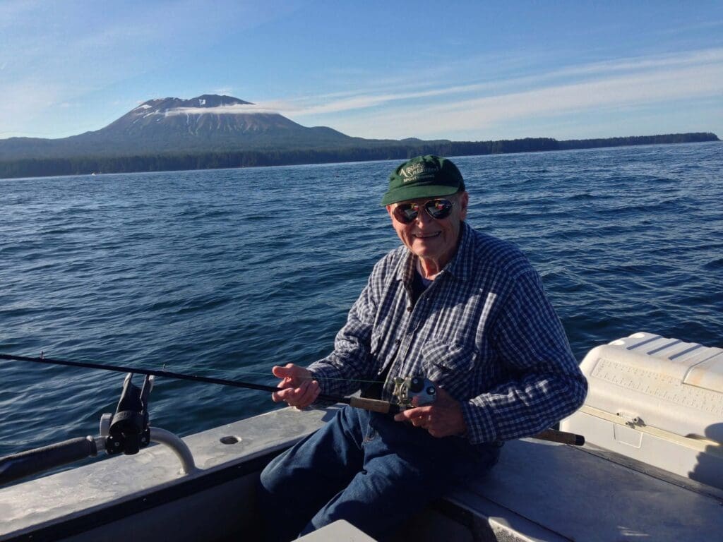 Ernie Peterson broke his own record in 2024 for the person with the most birthdays to ever fish with AU – he was 99. We all hoped to celebrate 100 with our dear friend this year. He turned 100 on February 13, 2025, then passed peacefully on March 8. We will miss his two-per-season trips to AU. We count ourselves ever so lucky to have known him, been friends with him, and fished with him for 3 decades in Sitka.