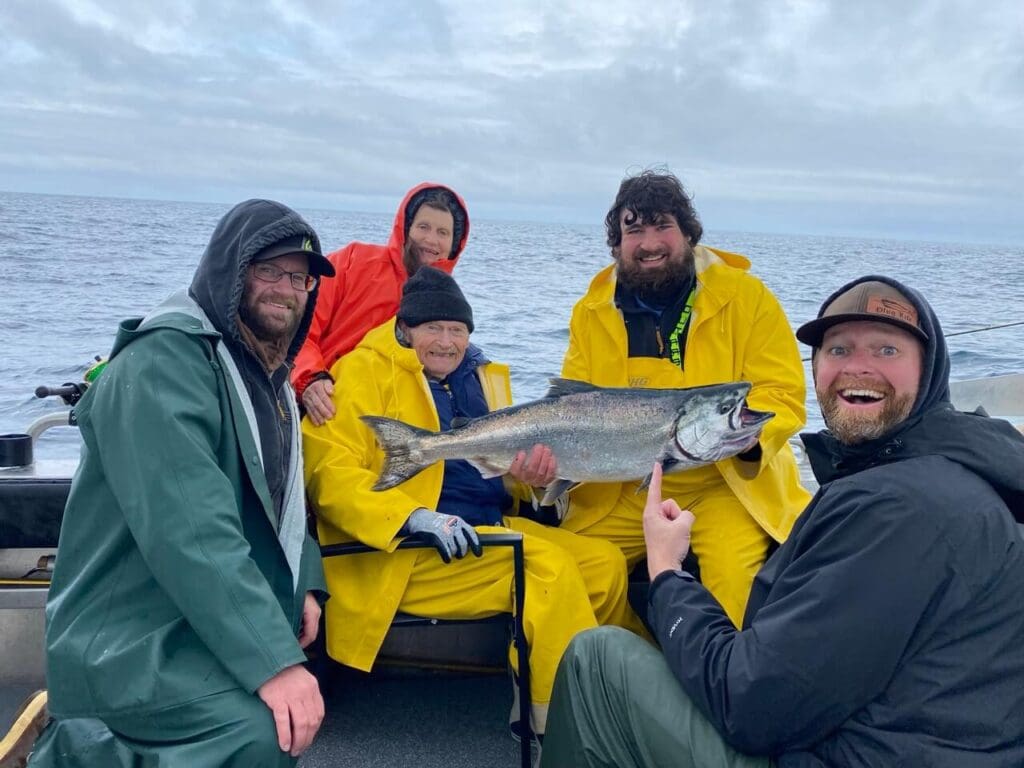 “The best thing about fishing with Ernie was hearing his endless stories, his incredible memory and sharpness until the very last time I fished with him. I remember him recalling catching a forty-pound king with his friend Milo every time we drove by Sinitsen Island. Even when he was sitting in the very back of the cab and didn’t have the best view, he’d always know exactly where we were. His stories were wonderful, spanning a century, he’d recall things about being in the military, commercial fishing, and life in general, all as if they happened yesterday. Also, his love of fishing was evident until his final trip. Putting in three full days on the boat is demanding on most people of any age, but he did it twice per season until his final trip at age 99. He was able to fight and land his salmon and halibut until the end. He was one of a kind and will be missed.”