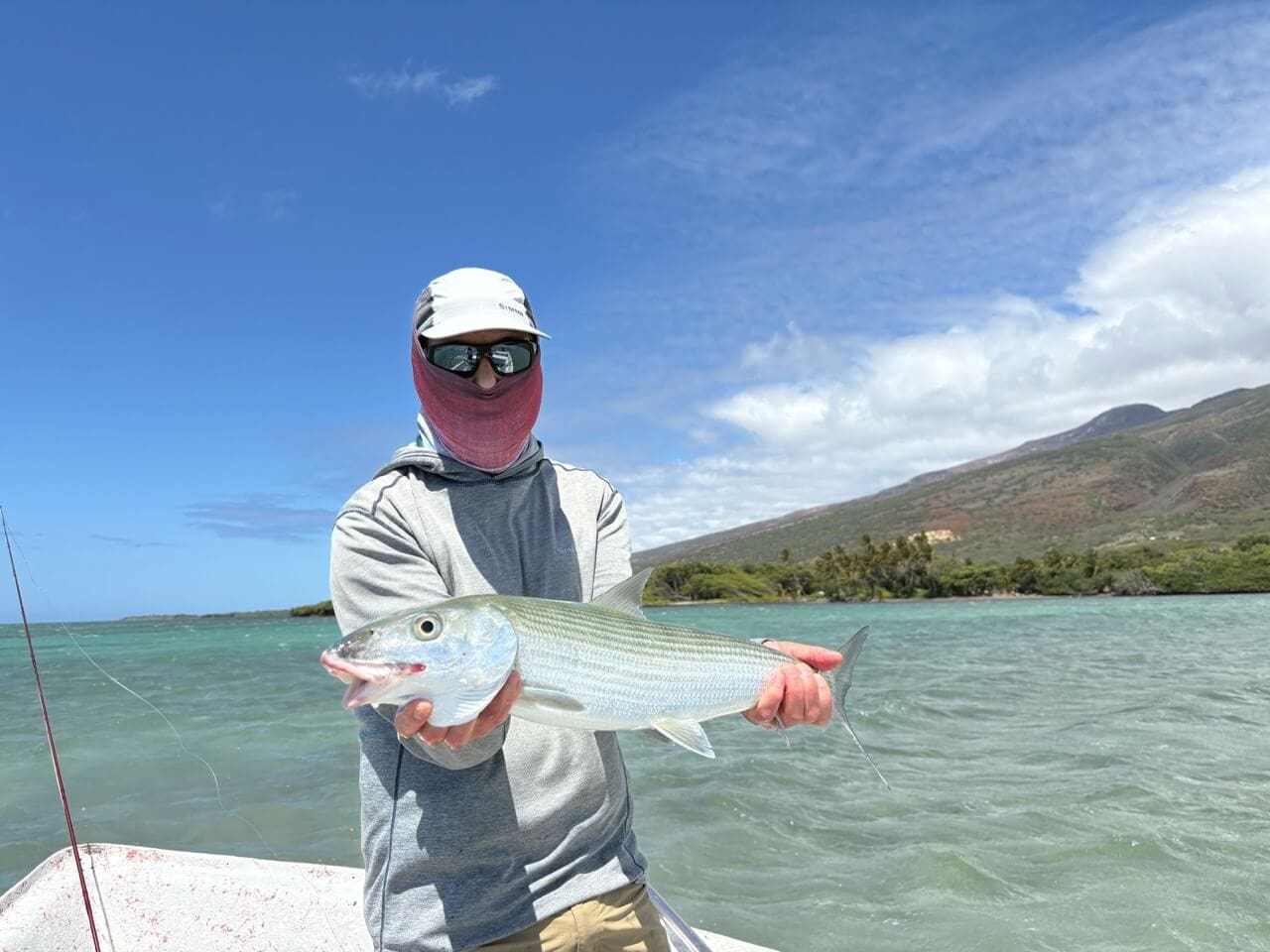 Last week, Tom was in the mid-Pacific with wife Linda Mae, daughter Hanne, and son-in-law Zack. Three days were spent on Molokai, including fly fishing for bonefish with guide Joe Kalima, who is former AU processor Ehu’s godfather. They have big bonefish there, and he’s a wonderful guide. Learn more here.