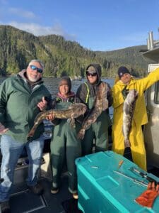 Springtime in Sitka has felt a bit like October this year. We’ve seen more than our share of rain, wind, and cold. Though hardly the weather our guests, captains, and crew hope for, we’ve seen exciting catches in protected inside waters. This spring has delivered better king fishing on inside spots than we’ve seen in a while including a 33 pounder landed on Captain Chuck’s boat and a number of fish in the mid to high 20’s. Lingcod catches have been decent on the protected water. A handful of GAF halibut, including a 100 pounder landed by Mark, were landed on flat calm water on days when the ocean was too cranky. Blackcod harvests suffer from rough water given that it’s a long run out on open ocean and very deep water. One of our boats got out on Monday and landed half limits. We are looking at a good stretch of weather starting on Tuesday the 10th. Sitka seems to have two seasons. Winter: cold, rainy, and wet. Summer: calm and far less wet. We’re hoping the corner has turned toward summer.