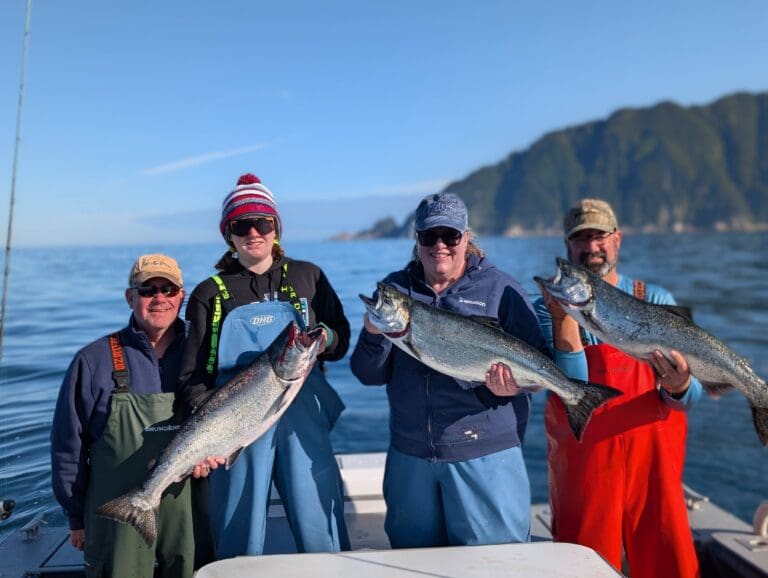 The good news for the start of July is that it is the best early showing of silvers that we’ve seen in recent years. AU’s first boat limit came on July 7 aboard Albatross with Captain Jack McNamee and the Leighton party of 6 – that’s 36 silvers. They pretty much fished all day for them forgoing offshore fishing for blackcod and halibut. Most of the boats split the effort and came in with half to ¾ limits.