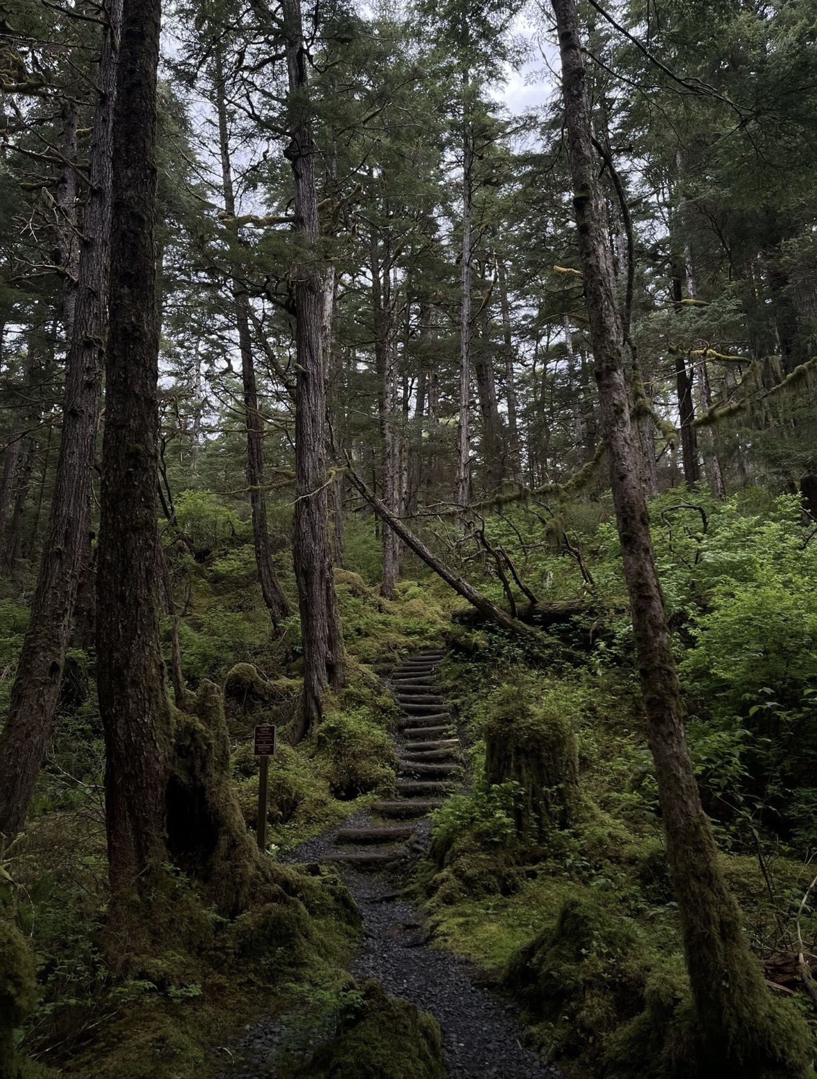 Relaxing walk along Kaasda Héen (Indian River) through northwest coast rainforest with views of the Sisters Mountain, wildlife and more. The trail follows a salmon stream, so expect high levels of bear activity during spawning season. 4.38 miles to waterfall.